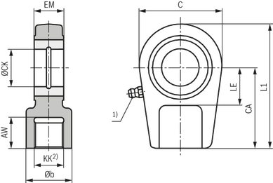 1) 潤滑頭,錐頭形式 A 符合 DIN 71412